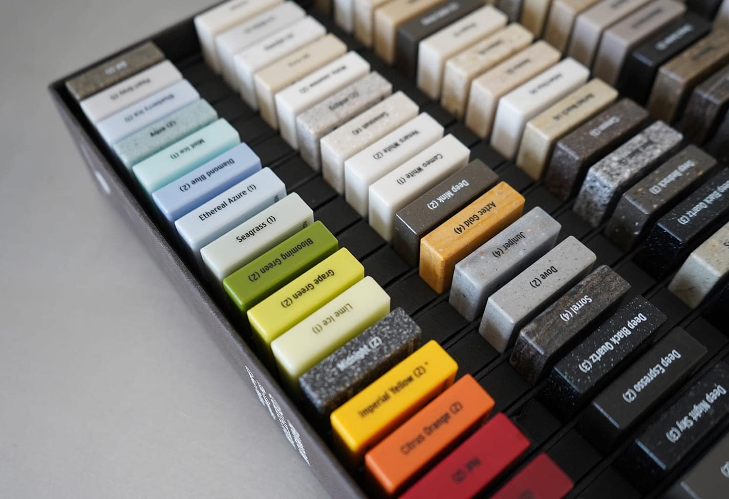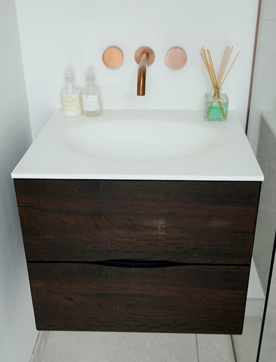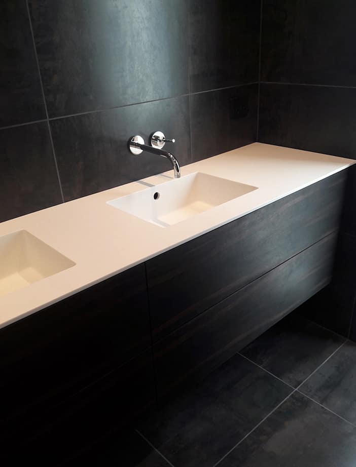 Corian / Corian er et stærkt og holdbart materiale, som er modstandsdygtigt over for ridser, pletter og stød. Det er ikke et porøst materiale, hvilket betyder, at det ikke absorberer væske og er modstandsdygtigt over for bakterier og skimmel, hvilket gør det særligt velegnet til badeværelses- og køkkenmøbler. Corian kan formes efter behov, hvilket giver mulighed for utallige designløsninger til vask og bordplade.