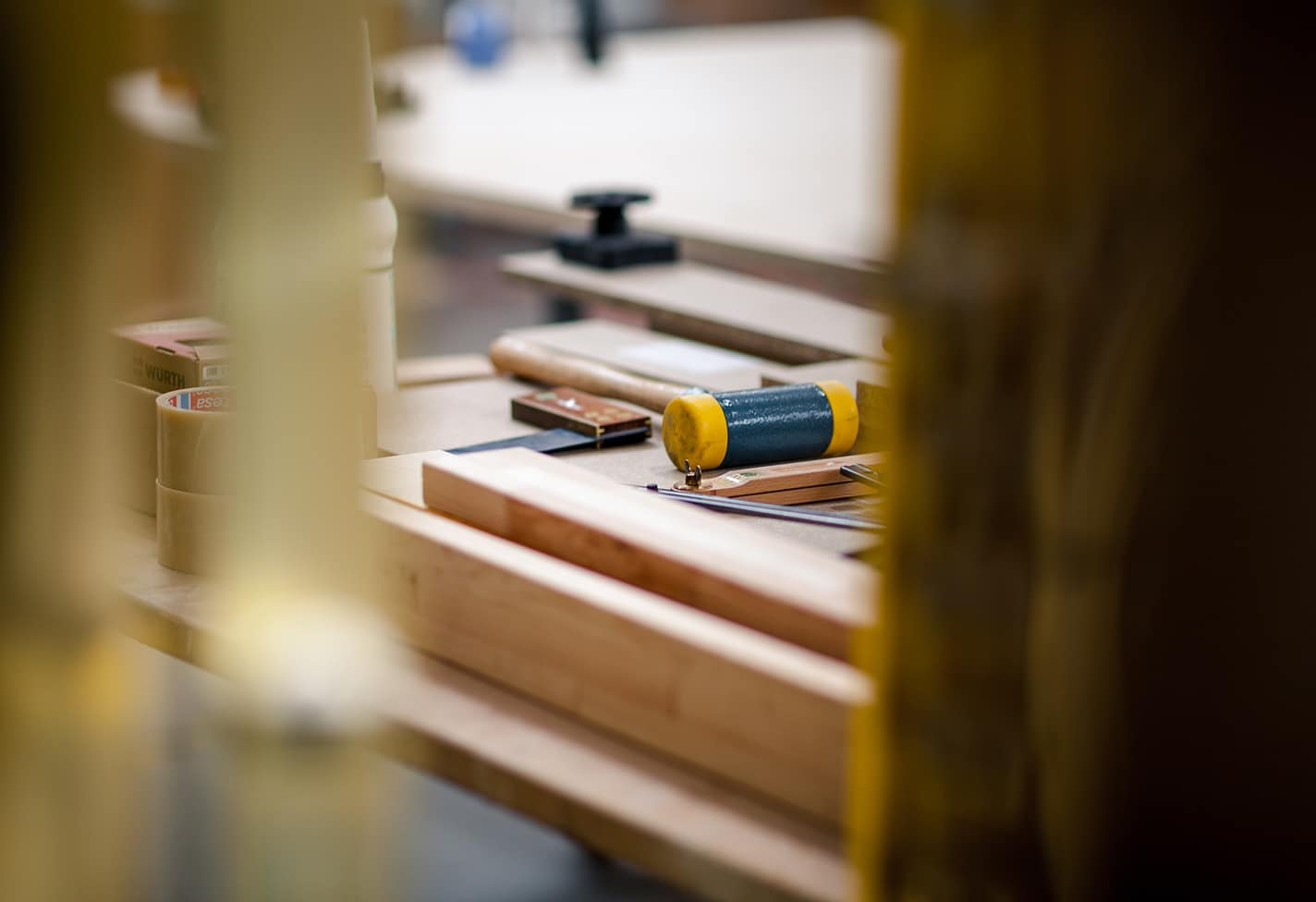 Alt er håndlavet og dermed ikke perfekte industrimøbler. Det betyder, at hvert stykke møbel fra Jesper Holm Design og Møbelsnedkeri har sit eget unikke særpræg.