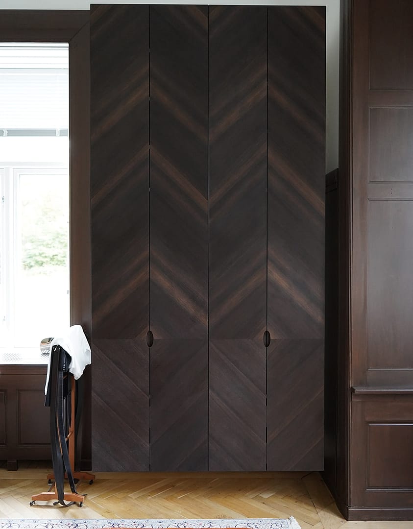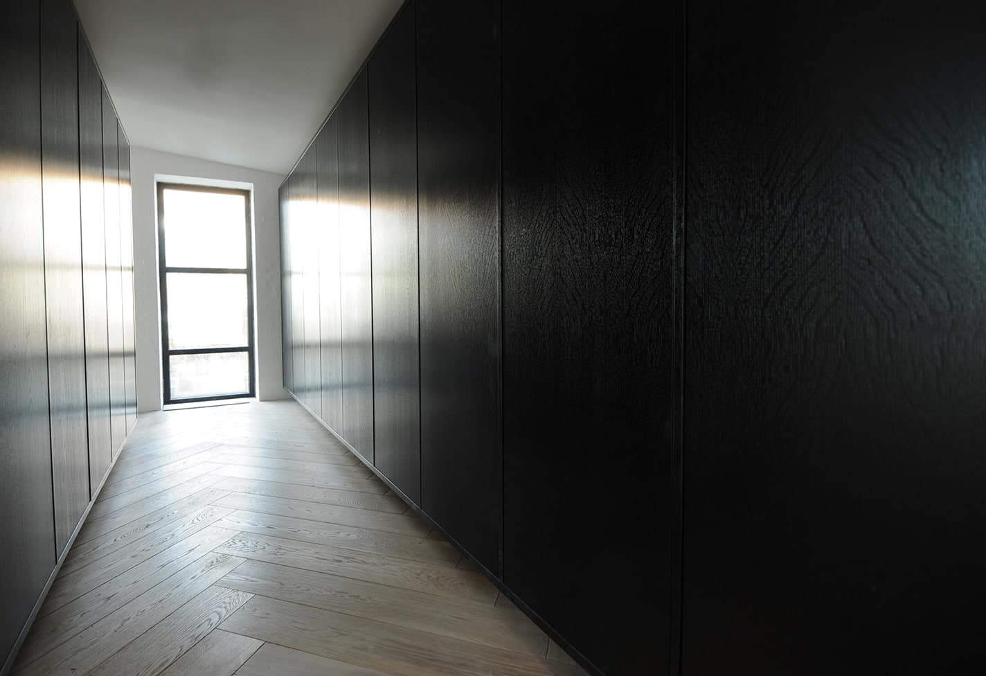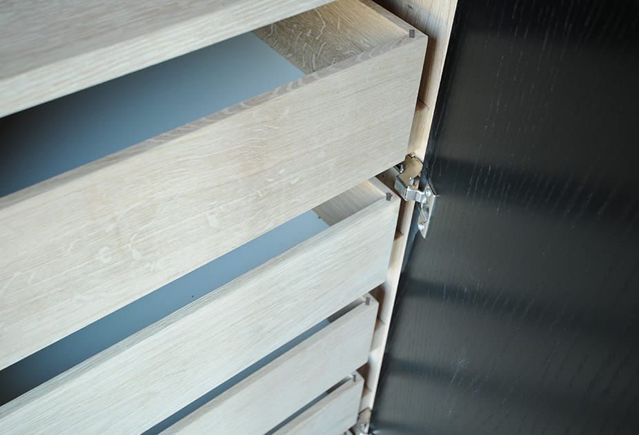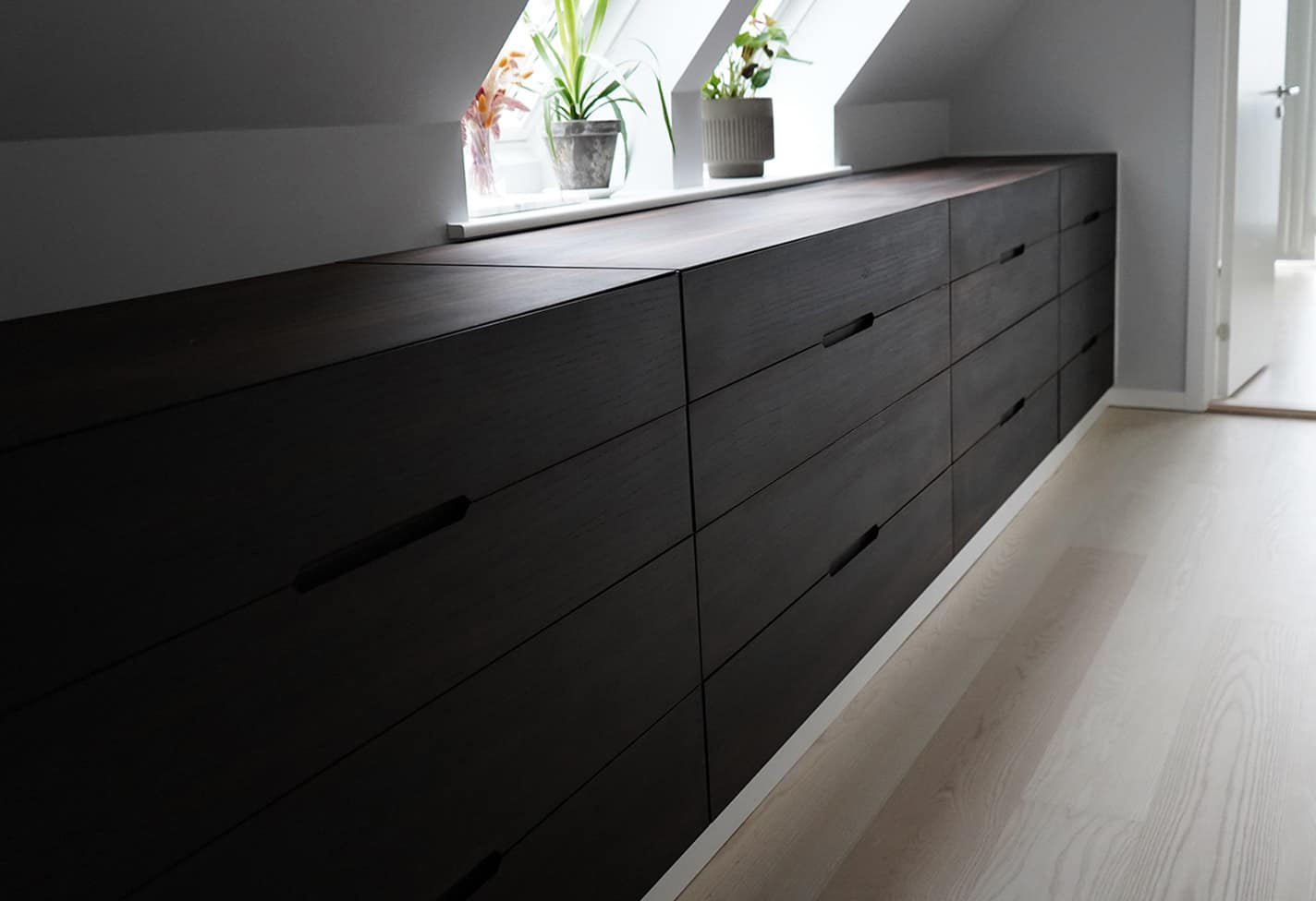 Vi designer og fremstiller garderobeskabe på mål i alle dybder, højder og bredder, og de monteres af vores egne snedkere. Møbeldesigner og snedker Jesper Holm går til opgaven med stor omtanke for garderobeskabets æstetiske udtryk i rummet, for at sikre, at det færdige produkt har en høj funktionalitet og er skræddersyet til det hjem, det skal stå i. Hele garderobeskabet produceres på vores snedkeri i Ishøj via en kombination af traditionelle snedkermetoder og moderne produktion.