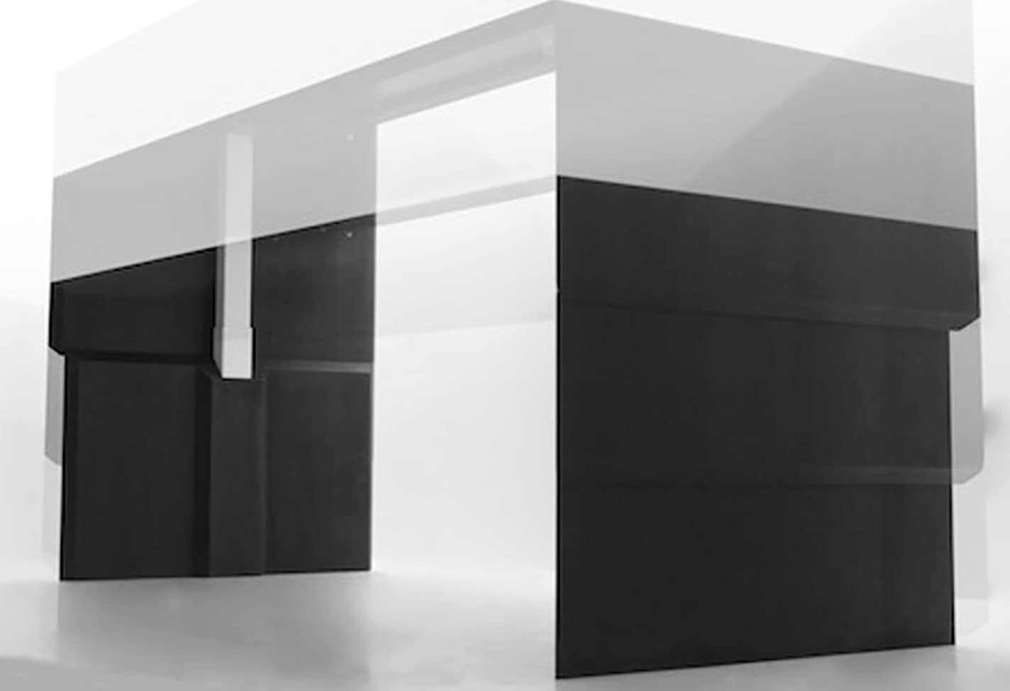 Gavlborde / Jesper Holm har designet hæve-sænke-bordene som gavlborde, idet det skaber et ryddeligt udtryk i rummet på trods af ledninger og andet kontorudstyr, fordi disse ting kan skjules bag gavlene.
