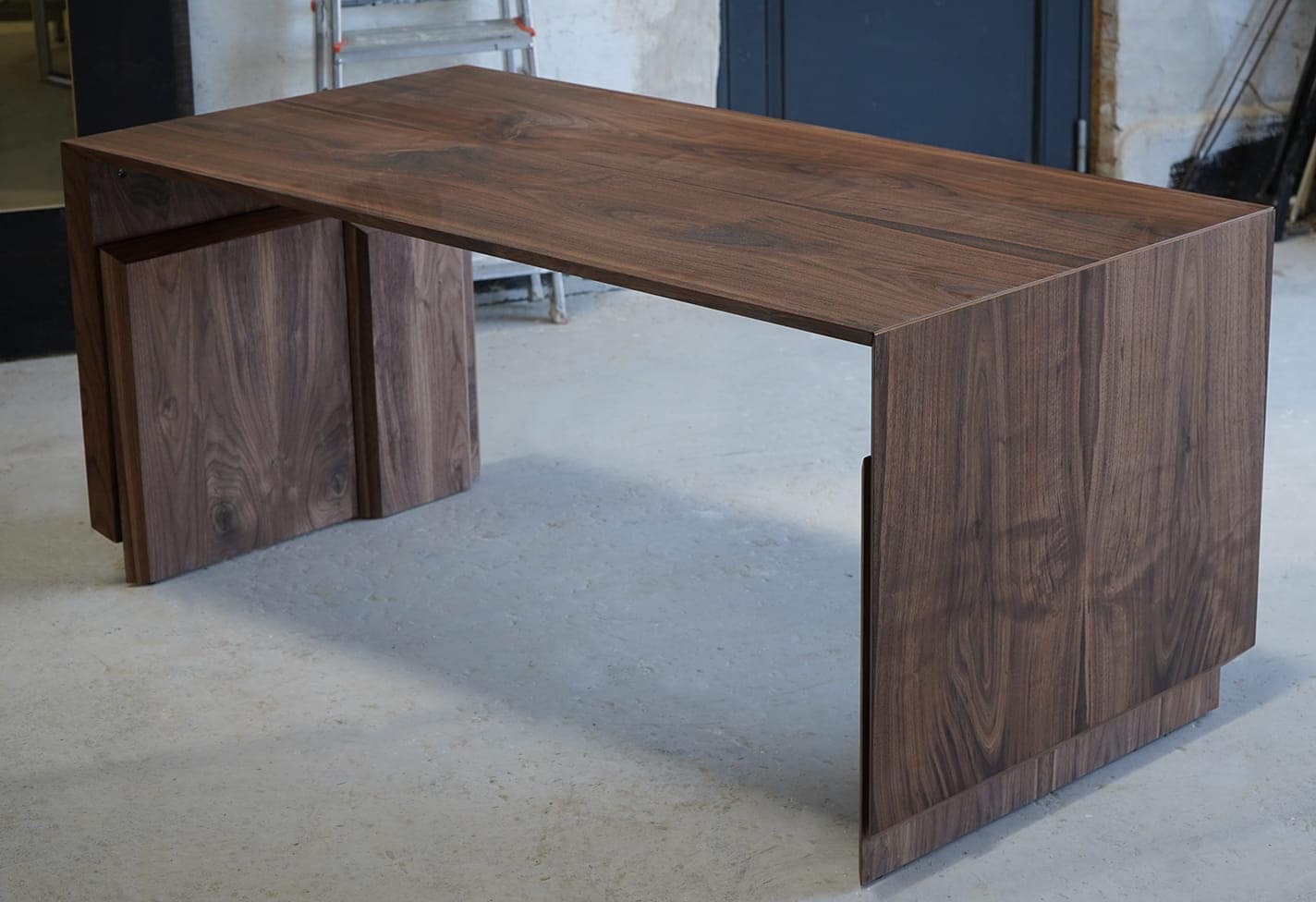 Naturligt mønster / Den gennemgående åretegning fra toppladen til sidepladerne giver bordet et naturligt mønster, som er forskelligt, alt efter hvilken træsort du vælger til dit bord. Disse borde er fremstillet af valnøddetræ, hvilket har en varm tone samt tydelige åretegninger.