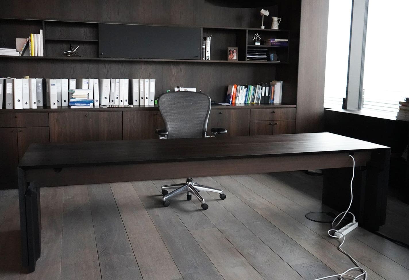 Et stort bord til et stort kontor / Jesper Holm står klar til at hjælpe med at bedømme, hvor stort dit skrivebord skal være. Bestil et indretningsbesøg og få designet bordet, så det passer helt perfekt til det rum, det skal stå i.