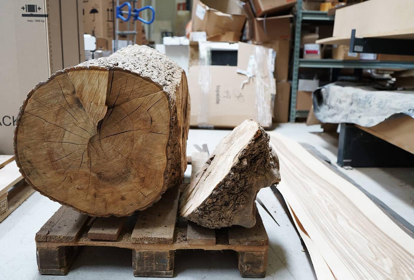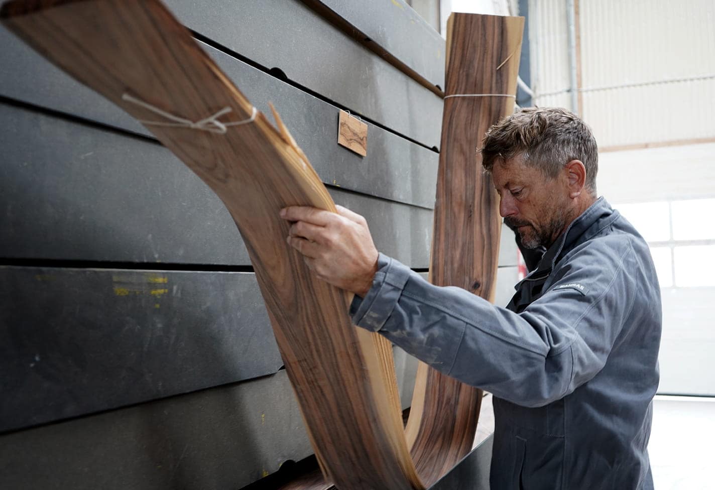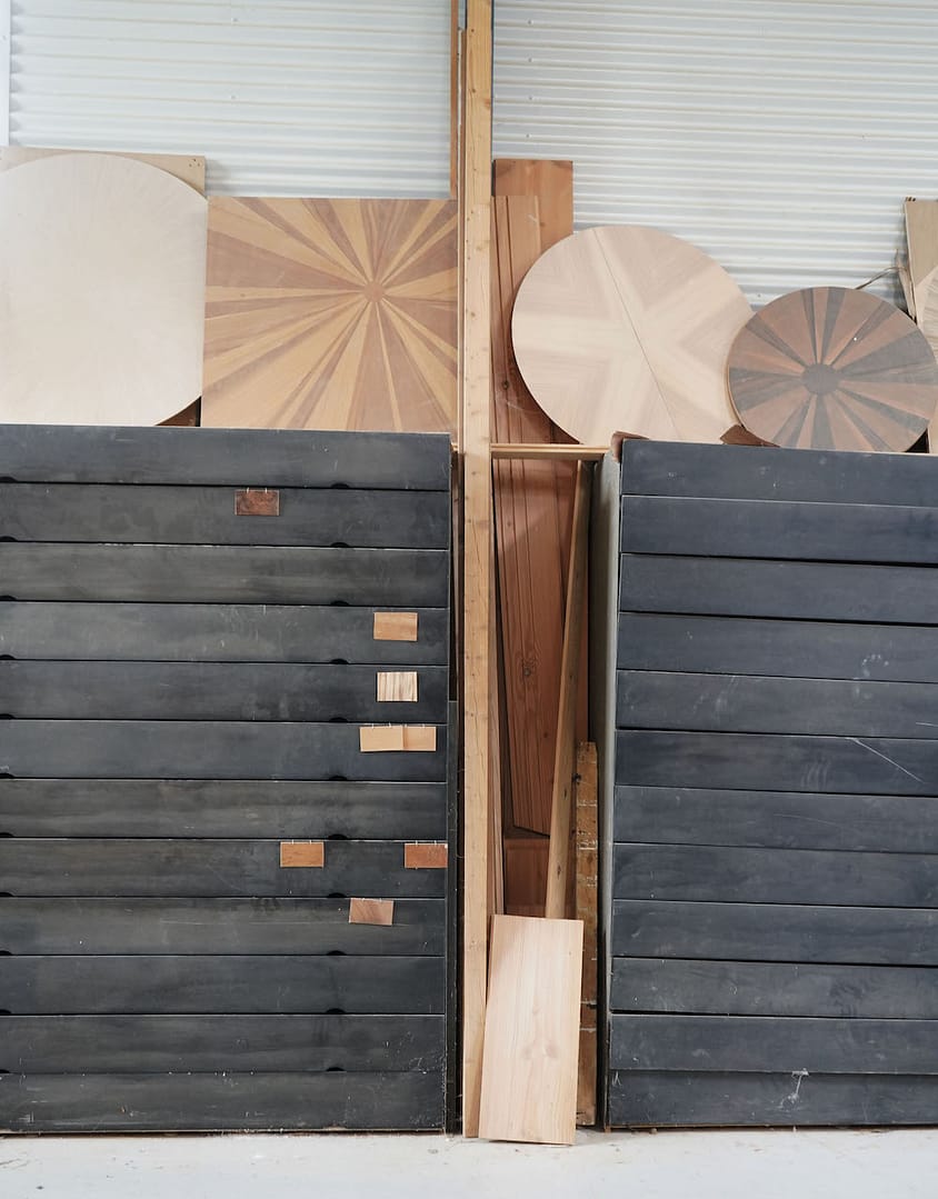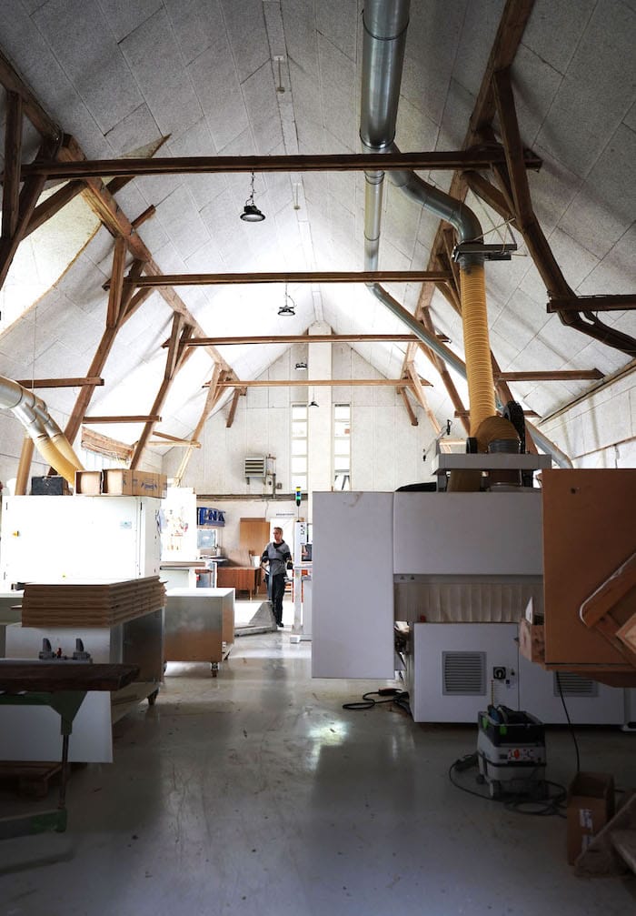 Besøg vores værksted / På en gammel Møllegård syd for København er laderne fyldt op med snedkermaskiner og et stort lager af træ og finér. Vi har en lille udstilling af møbler, og du er velkommen til selv at vælge det smukkeste stykke træ til dit møbel.
