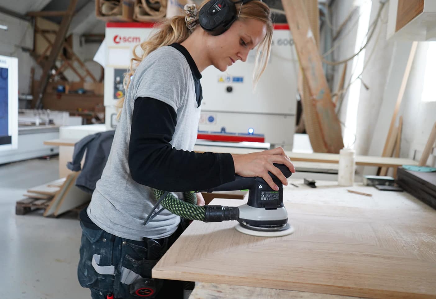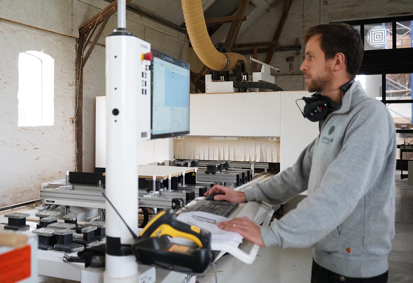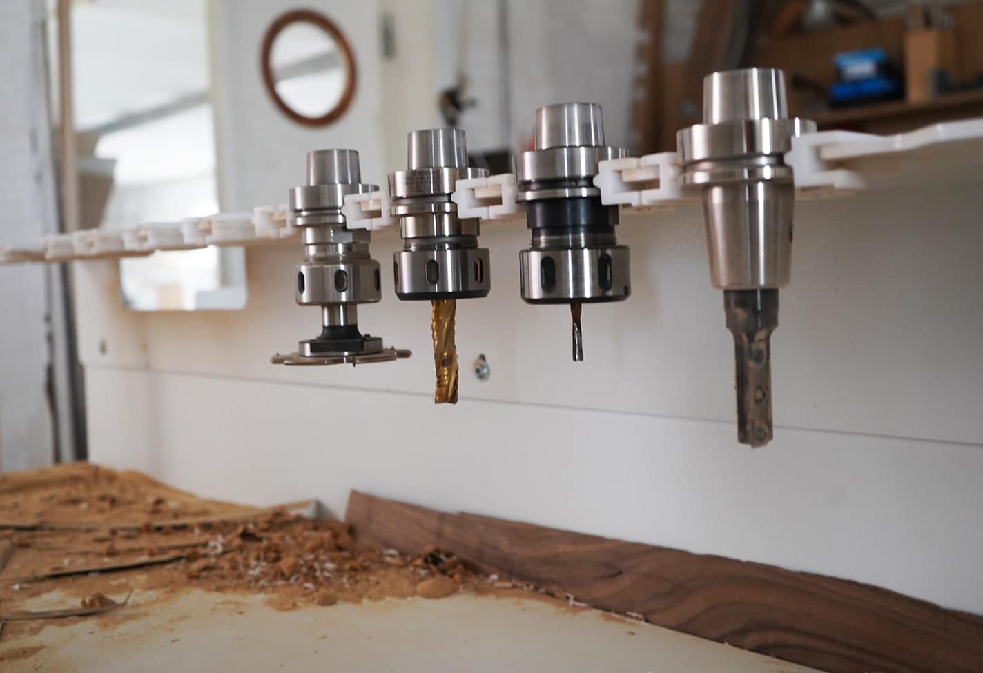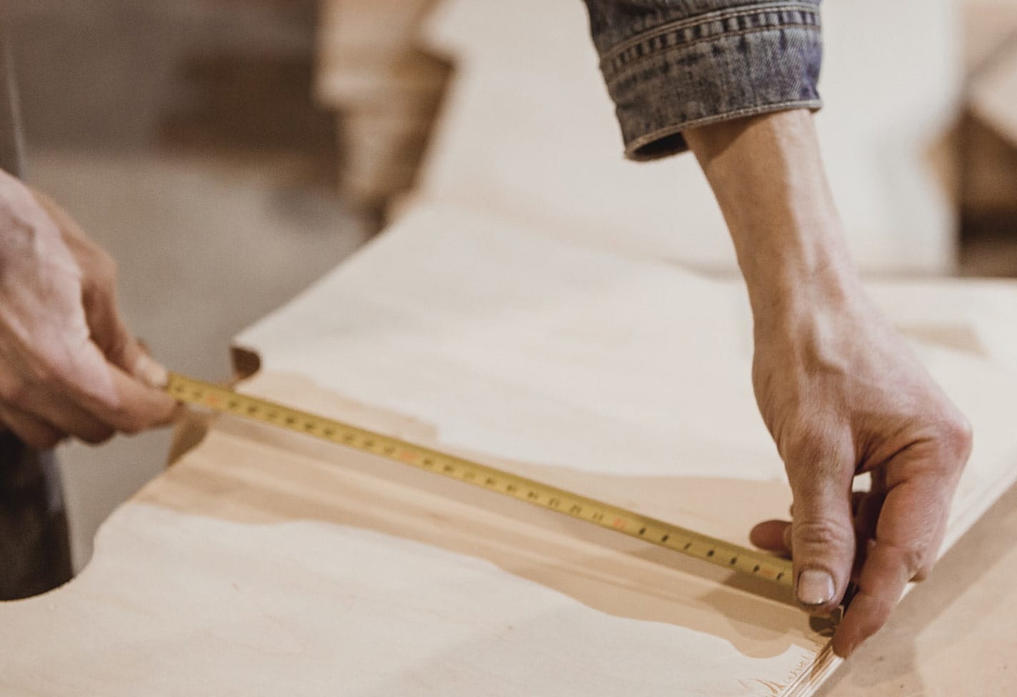 Besøg vores værksted / På en gammel Møllegård syd for København er laderne fyldt op med snedkermaskiner og et stort lager af træ og finér. Vi har en lille udstilling af møbler, og du er velkommen til selv at vælge det smukkeste stykke træ til dit møbel.