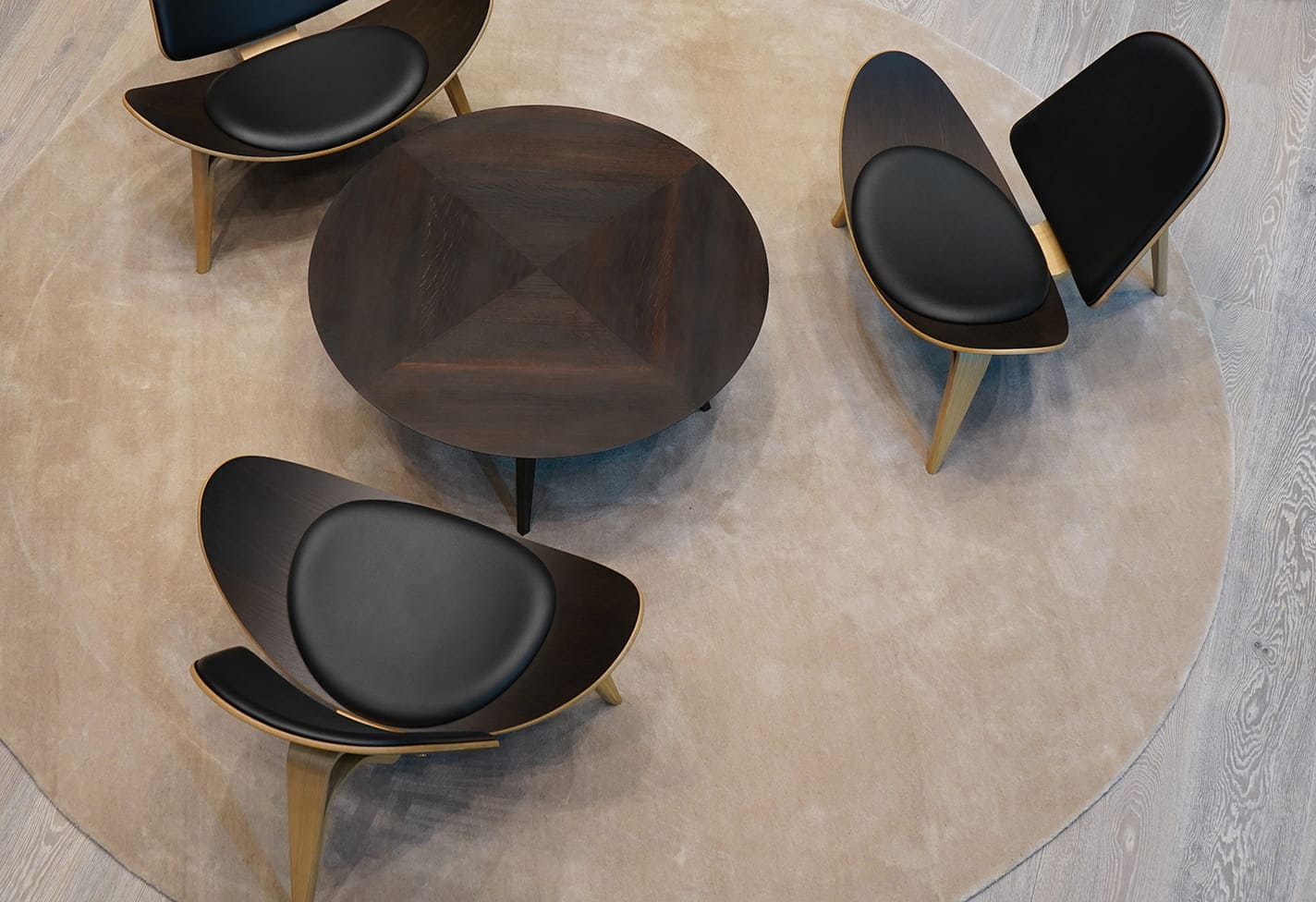 Logo indlægges i træet / Et lille Jesper Holm logo med signaturmønsteret indlægges i træet, eksempelvis som på dette bord, hvor logoet er indlagt i bordbenet.