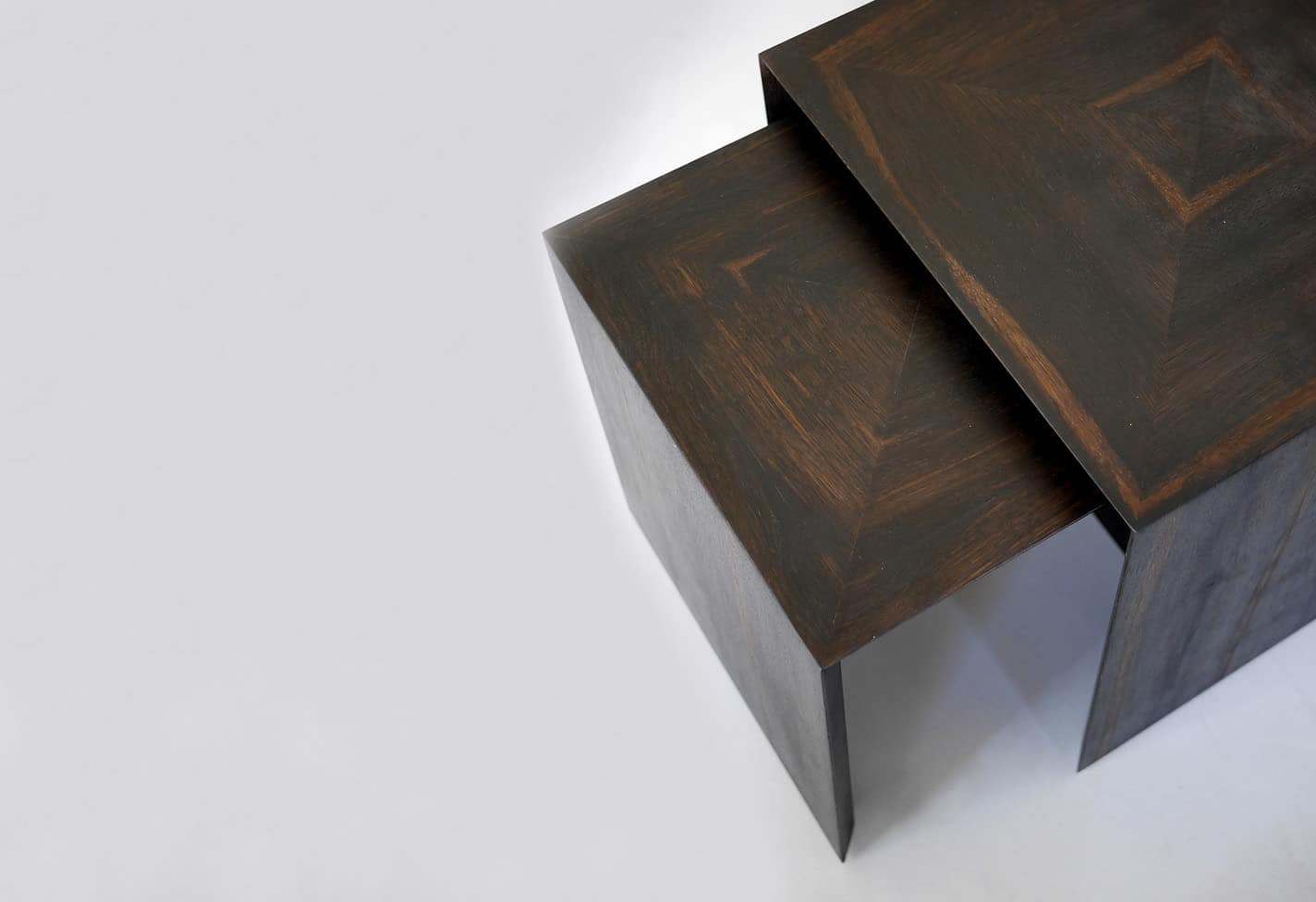 Logo indlægges i træet / Et lille Jesper Holm logo med signaturmønsteret indlægges i træet, eksempelvis som på dette bord, hvor logoet er indlagt i bordbenet.
